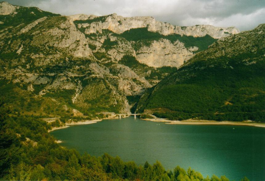 Blick von der Straße nach Moustiers über den Lac du Ste. Croix