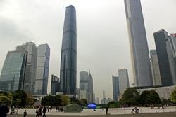 Den Abschluss unseres Aufenthalts in Kanton bildet der Besuch des hochmodernen Stadtzentrums am Perlfluss in der Nähe des Canton-Towers, eines Fernseh- und Aussichtsturms, der mit 600 Meter das z.Z. fünfthöchste Bauwerk der Welt ist. Dieses Stadtviertel ist noch sehr jung, die meisten Gebäude entstanden im Zusammenhang mit den Asienspielen im Jahr 2010. Das dafür errichtete Stadion sehen wir zusammen mit dem Turm auf der anderen Flussseite. Schade, dass die Stippvisite in Kanton nur so kurz war, denn noch am Abend geht es mit der Fähre nach Hongkong, unserem letzten Etappenziel. Am späten Abend kommen wir in unserem Penta Hotel an, welches sich in einem Industrieviertel im Stadteil Kowloon befindet, ansonsten aber ganz ok ist. |