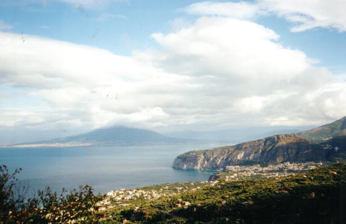 Blick auf Sorrento, im Hintergrund der Vesuv