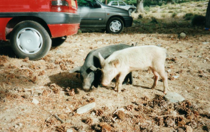 Wilde Schweine lauern im Gebirge harmlosen Touristen auf